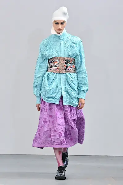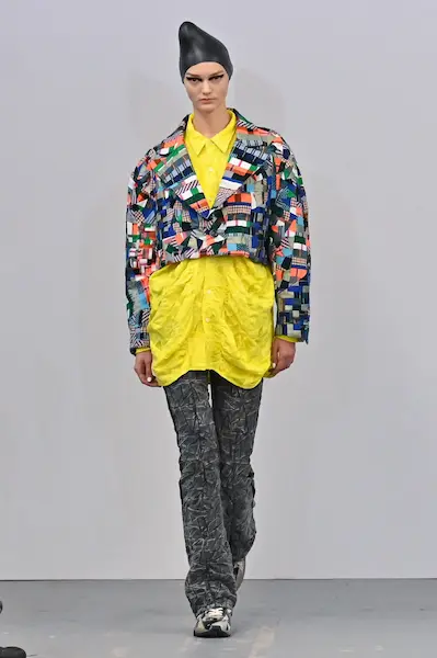 2003年のブランド創設以来、AからZへ、現実から非現実へ、天から地へ、そして宇宙から地球へと循環するアンリアレイジのDNAの基盤となっているのは、対極の世界を探求することで、遠く離れた二つの世界をつなぐことです。 2023年春夏シーズンは、ブランド設立20周年を記念する節目のコレクションであることと、Covid-19によるパンデミックから2年半ぶりのパリでのフィジカルショーであることを踏まえ、アンリアレイジがブランド初期から20年続けてきたパッチワークのハンドクラフトガーメントを展開します。ショーはパリ現地で見るショー形式と映像でみるデジタルショー形式の2章構成で、デジタルショーを通じてコレクションが完結します。 【フィジカルとデジタルの融合】 9月27日に開催されるフィジカルランウェイショーでは、15体のパッチワークルックが披露され、続いて5体の裏返しのブラックパッチワークルックが披露されます。その後後半では、ショーの前半と同じ15体のルックがリバーシブルとなり、パッチワークの継ぎ目が露出された裏返しのルックが披露されます。パッチワークの裏に潜む無数の縫い目は、ハンドクラフトで紡がれた時間を可視化しています。 映像でみるデジタルショー形式では、フィジカルショーの異なる時間軸が縫い合わされて、パラレルワールドを展開します。それぞれのパッチワークルックは、裏返しの分身とペアになり、同じモデル二人が並んで同時にランウェイを歩きます。一人は表の服、一人は裏返しの服を着て、二人が同時に世界に存在します。デジタルフィールドで、表と裏、リアルとクローン、フィジカルとデジタル、AとZに象徴される対概念が共存します。このデジタルショー映像は、ショー後、29日にParis Fashion WeekのウェブサイトとアンリアレイジのYouTubeチャンネルで公開されます。 【クラフトへの頌歌】 アンリアレイジのシグネチャーであるパッチワークへの回帰となるコレクション。パッチワークは、異なる二枚の布を一枚に縫い繋ぐことからはじまります。AとZを繋ぐように、異なる二枚の布同士を、色の境界、質感の境界を超えて、何度も縫い繋ぐことで、ルックが出来上がります。1つのルックに使われているテキスタイルの種類は、多いもので200種類、主にデッドストック生地を特徴とし、1体のルックは2000パーツから最大4,000パーツによってつくられます。 リバーシブルのパッチワークルックは、表裏で視覚の違いとテクスチャーの違いを生み出します。加工されたヴィンテージのデニムが縫い合わされた単色のルックからはじまり、無数のマルチカラーの断片がパターン化されたものへと進化します。ヴィンテージアメリカンパッチワークを想起させるようなクラシックなリバティプリントからスーツ地の硬質なウールギャバや繊細なレースまで。あらゆる種類の生地を使用して、小さな切手サイズの三角形や四角形に愛情を込めて手作業で縫い合わせることで、質感と色が混ざり合う万華鏡のような柄をつくります。 女性のための日常着は、丹念な手作業によって変化します。彫刻的なボリュームと細長いフォルムの対比、バルーンスリーブとたっぷりとしたフリルの柔軟な印象とシフト-ドレスの硬質な印象の対比、複雑なテクスチャーはロングコートやパンツなどのテーラードルックに深みを与えます。足元はパッチワークのアンクルブーツとジャーマントレーナータイプのスニーカー。スニーカーは、シューリメイクブランドRecoutureとのコラボレーションによるもので、フローラルプリントやレザー、さまざまな色を組み合わせています。 【「内」と「外」、二つの世界の音】 ショーの観客は、NTT独自のPSZ技術を活用し、NTTソノリティが開発した耳を塞がないイヤホンを装着します。PSZはPersonalized SoundZone(パーソナライズドサウンドゾーン)の略。同技術では、ドライバー(音の出口)から一定距離にある、耳周辺の極小さな特定エリアに限定して音を再生し、ある音波(正相)に対して逆相の音波を当てることで音波同士が打ち消し合う作用を活かすことで、その音が漏れない環境を実現します。 アンリアレイジの信念と精神に忠実であり続けること。神は細部に宿る。